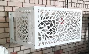Изготавливаем защитные кожухи для кондиционеров на заказ. Можете выбрать любой рисунок в интернете и мы реализуем для вас уникальный антивандальный короб. В стандартной комплектации будет разборным, что удешевит доставку. Решетка кондиционера может крепиться к стене или к направляющим, на которых обычно размещают кондиционер.