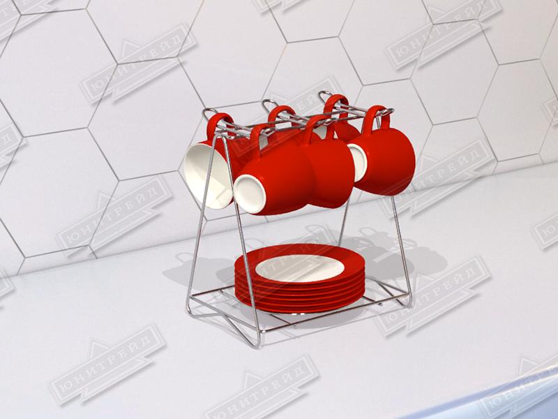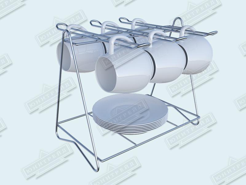 Главная / Продукция / Хозтовары / Кухонные принадлежности / Настольные подставки / Подставка для кружек и чашек настольная на 6 предметов