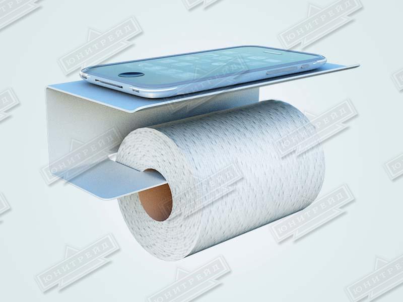 Держатель для туалетной бумаги настенный с полочкой. Бумагодержатель металлический с полкой под телефон или освежитель воздуха, может быть приклеен к стене на двусторонний скотч или же прикручен на саморезы или дюпель-гвозди. Опт от 100 шт.