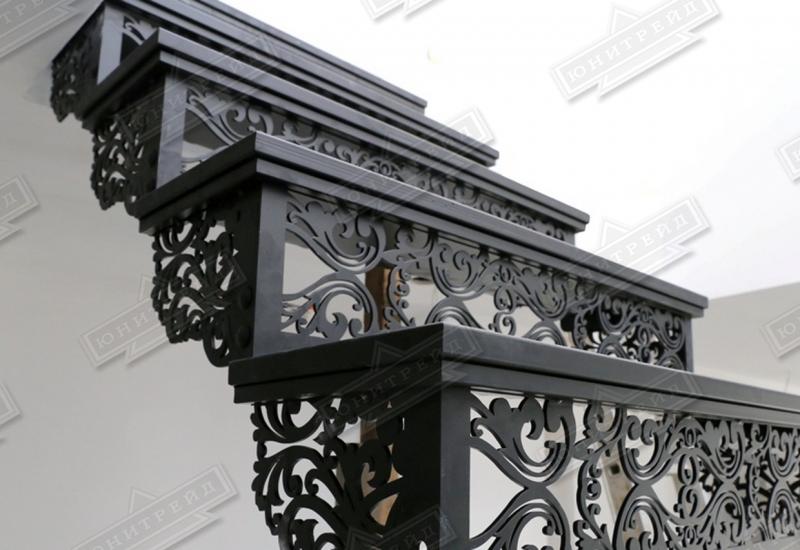 Возможно изготовление элементов лестниц с использованием лазерной резки металла - ступеней, ограждений перил в едином стиле по желанию заказчика