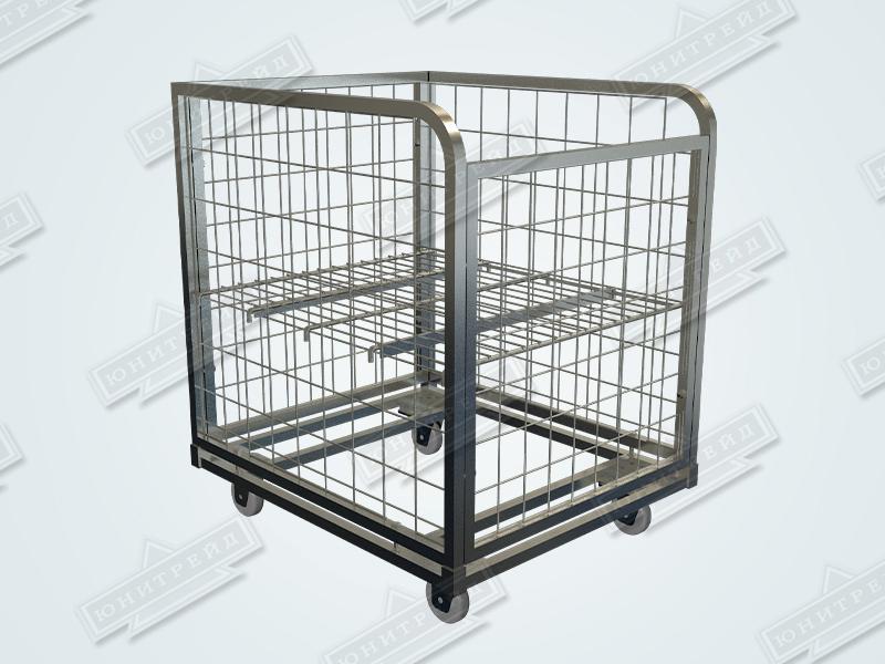 Металлический сетчатый контейнер предназначен для перевозки грузов на складе. Разборный, что упрощает его транспортировку.
