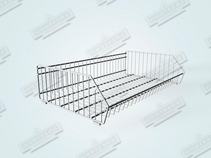 Главная / Продукция / Торговое оборудование / Комплектующие для стеллажей. корзины,настилы, ограничители / Корзина стеллажная, устанавливается на кронштейн