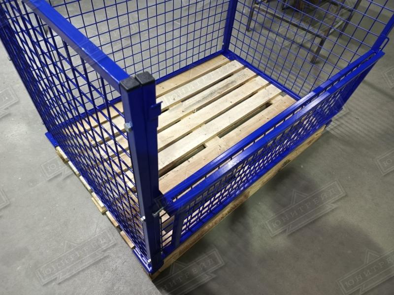 Сетчатый бокс оснащен дверцей, которая позволяет извлекать товар с поддона.