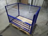 Главная / Продукция / Торговое оборудование / Ограждение на европоддон паллету и надстройки к ним / Корзина паллетная 1209х800х890мм, с 1-ой продольной дверцей, нештабелируемая, ячейка 50х50х4мм, труба 20х20х2мм, RAL5002