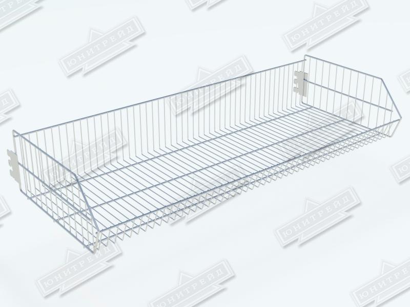 Главная / Продукция / Торговое оборудование / Комплектующие для стеллажей. корзины,настилы, ограничители / Корзина стеллажная на кронштейнах H