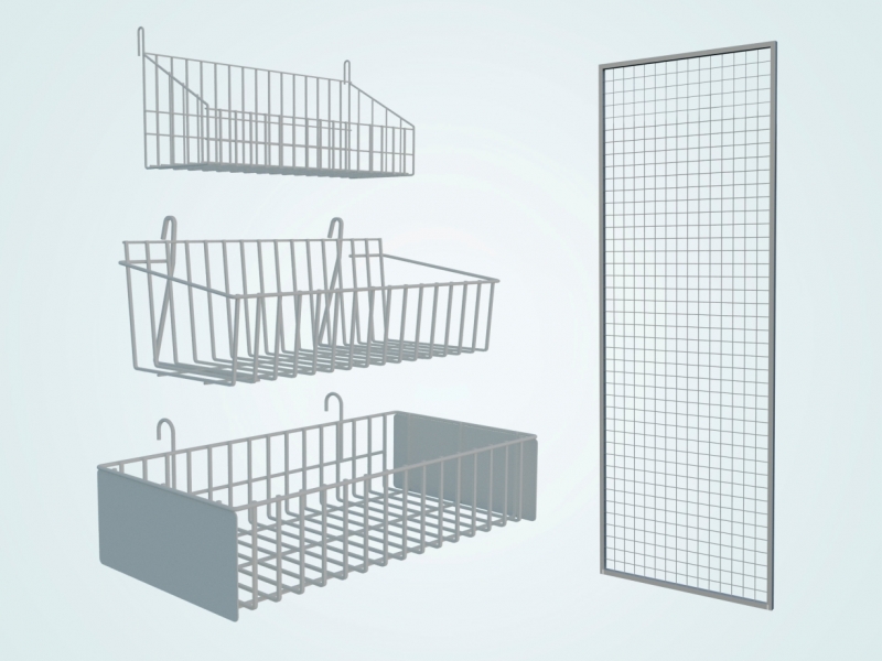 Главная / Продукция / Торговое оборудование / Сетки, сетчатые стенды с перфорацией, навесы и крючки / Корзины навесные на сетчатый стенд