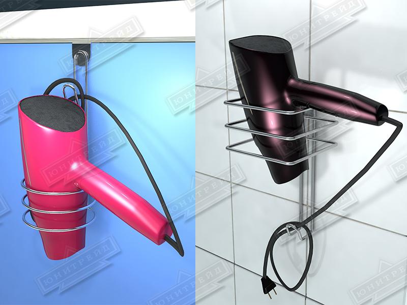 Главная / Продукция / Хозтовары / Аксессуары для ванной комнаты / Органайзеры/Держатели / Подставка для фена // держатель настенный (на дверь)