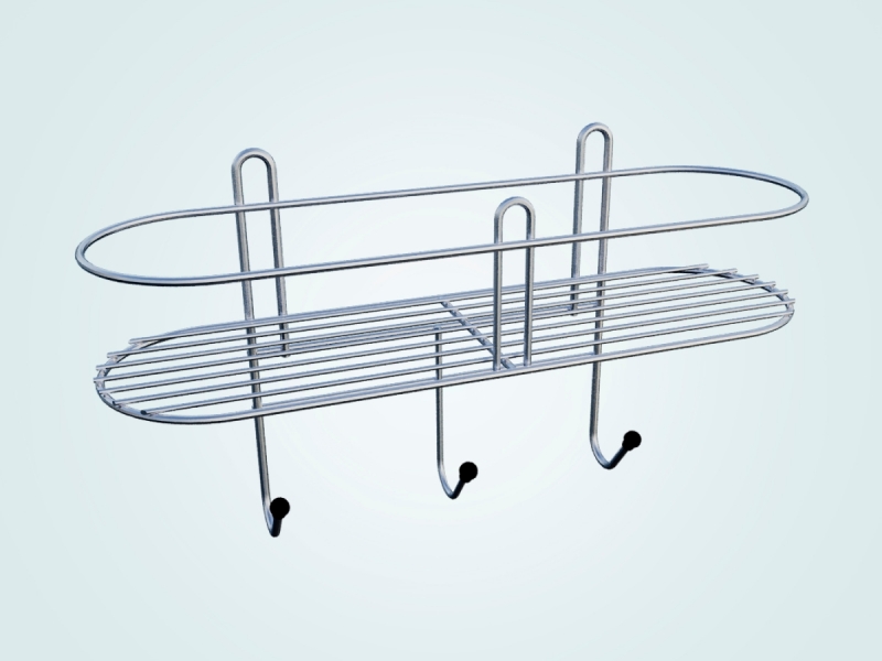Металлическая навесная полка с 3-мя крючками для ванной комнаты сделана из проволки.Состоит из одного яруса. Имеет овальную форму и крючки для мелочей. Предназначена для хранения шампуней. Крепится на саморезы (идут в комплекте).