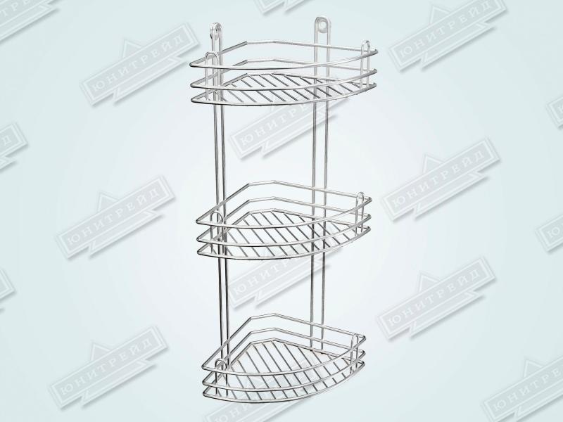 Главная / Продукция / Хозтовары / Аксессуары для ванной комнаты / Полки угловые / Полка для ванной угловая 3-х ярусная страйт глубокая