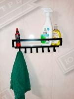 Металлические настенные прямые полки для ванной комнаты сделана из листового металла. Состоит из 2х полок, которые могут регулироваться по высоте и крепиться к стене на саморезы (идут в комплекте). Нижняя полка имеет7 крючков для мелочей и бортик в передней части полки может служить полотенцедержателем. Верхняя полка также имеет полотенцесушитель. Полки больше всего подходят под стиль лофт и минимализм в интерьере, предназначены для хранения шампуней полотенец, аромасвечи, аромамасла, мыла, крема и т.п.