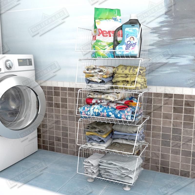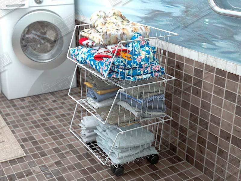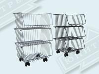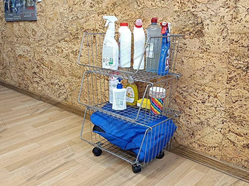 Главная особенность - корзины можно ставить друг на друга в любом количестве, при этом доступ к объектам хранения сохраняется. Этажерка разбирается, что позволяет снизить затраты при транспортировке.Могут быть с колесами и без. Крепятся друг на друга с помощью крючков.
