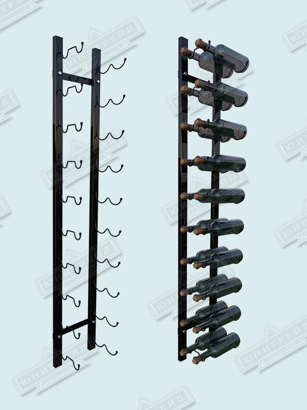 Главная / Продукция / Торговое оборудование / Оборудование для торгового зала (стенды /стойки/стеллажи) / Стойка под вино вертикальная, настенная, разборная