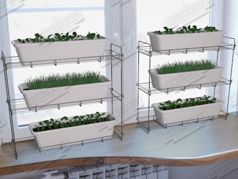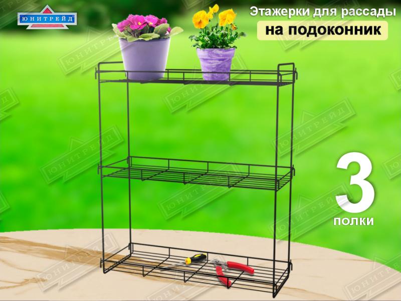 Металлический стеллаж для рассады на подоконник станет отличным дополнением к арсеналу садовода. 3 полки увеличивают полезную площадь подоконника в 3 раза. Этажерка подойдет для выращивания рассады, микрозелени и небольших цветов. Полка для рассады не требуется особого пространства на окне за счет своих размеров – ШхГхВ= 770х220х690 (мм) .