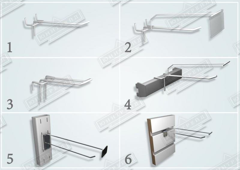 2 - Крючок на перфорацию одинарный с ценникодержателем;