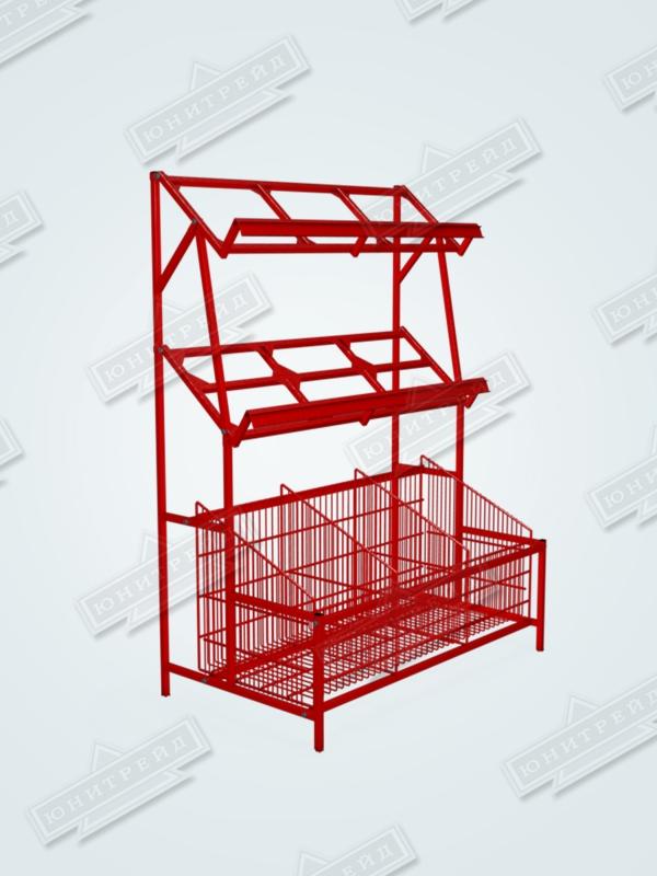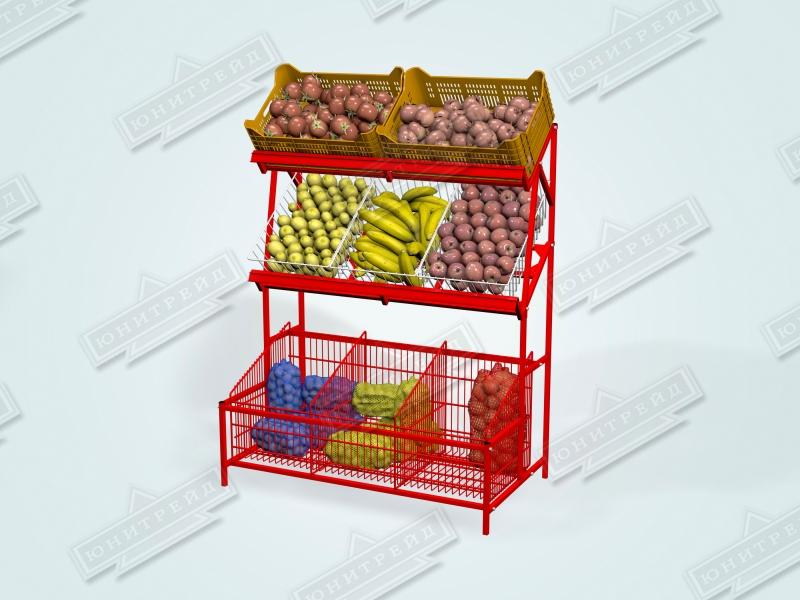 Овощной металлический стеллаж-развал предназначен для выкладки овощей и фруктов в торговом зале.