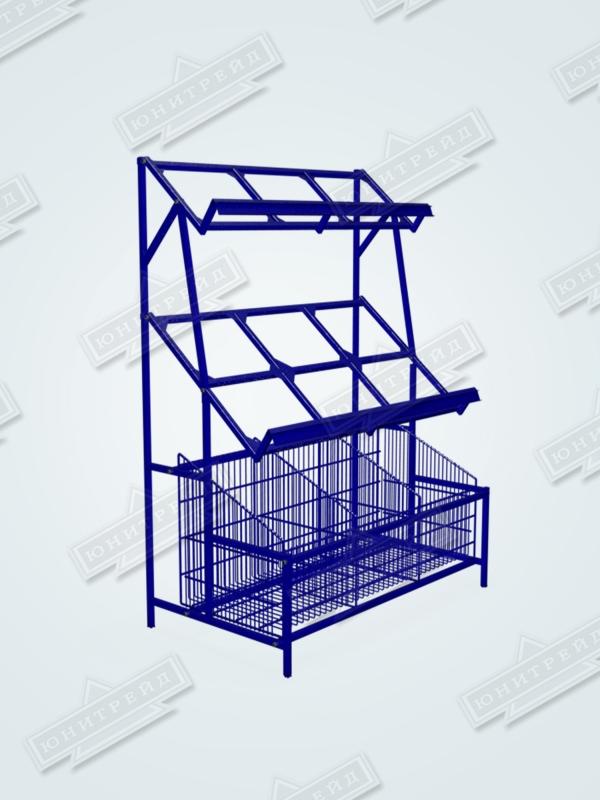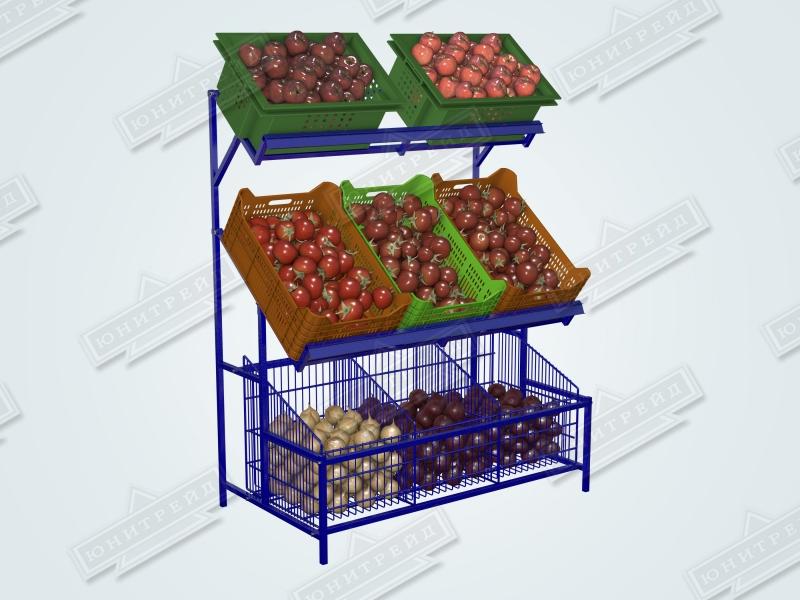 Овощной металлический стеллаж-развал предназначен для выкладки овощей и фруктов в торговом зале.