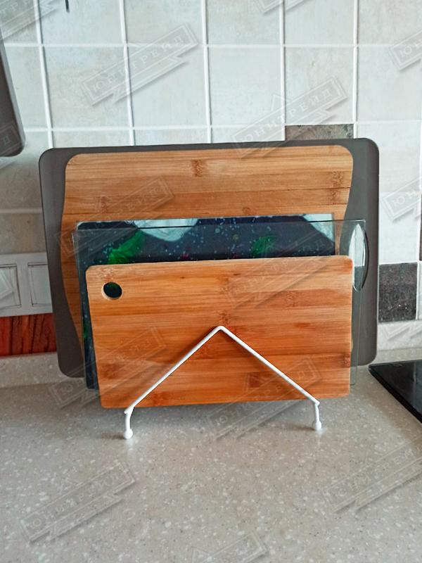 Металлическая подставка подразделочные доски устанавливается на стол на кухне. Предназначена для хранения и сушки досок.