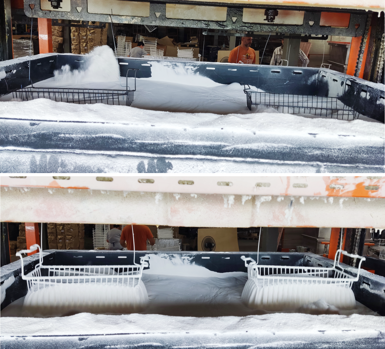 Термопластичное покрытие – это порошковое покрытие, которое было специально разработано для обеспечения долговечного и прочного покрытия поверхностей металлов. Толщина нанесения слоя краски составляет от 400 до 700 микрон. Краска наносится методом окунания в ванную, где полностью покрывает изделие равномерным однородным слоем заполняя все поры и неровности, включая острые кромки. Это помогает сократить время и увеличивает скорость изготовления продукции.